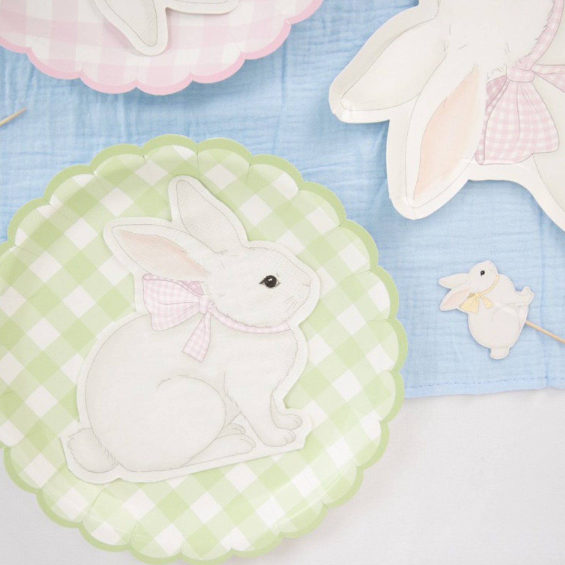 8 assiettes plates festonnées motif Vichy pastel - 4 couleurs assorties
