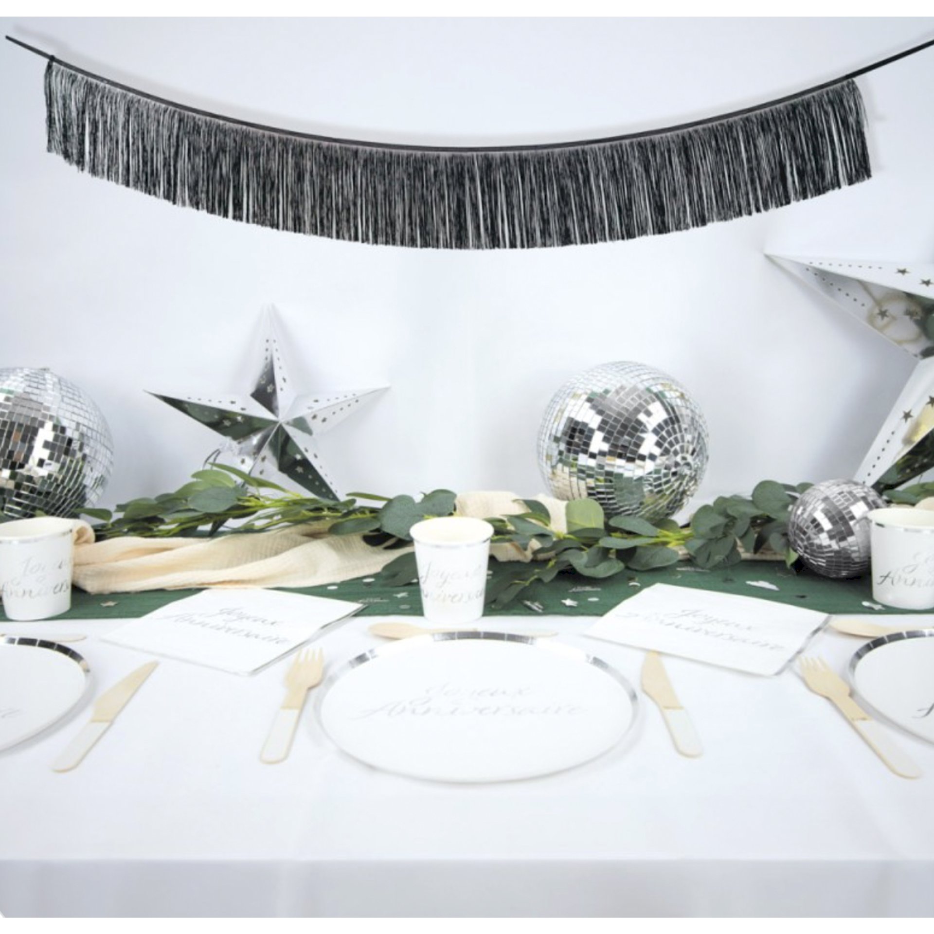 Accueil DECORATION & ARTICLES DE FÊTE Décoration à suspendre GUIRLANDE FRANGES LAMEES NOIR