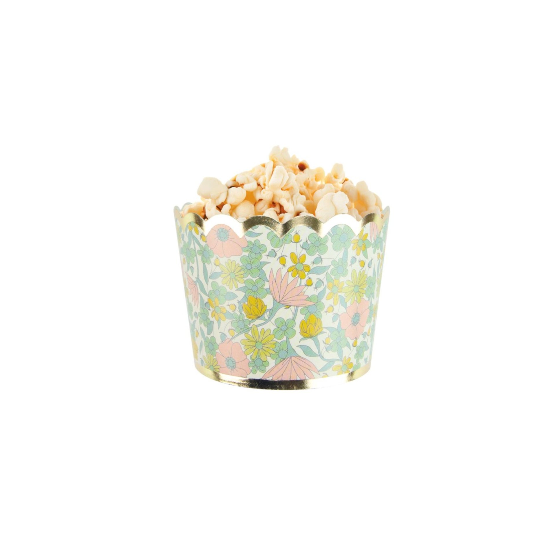 8 jolis petits pots festonnées motif floral Shabby et liseré Or