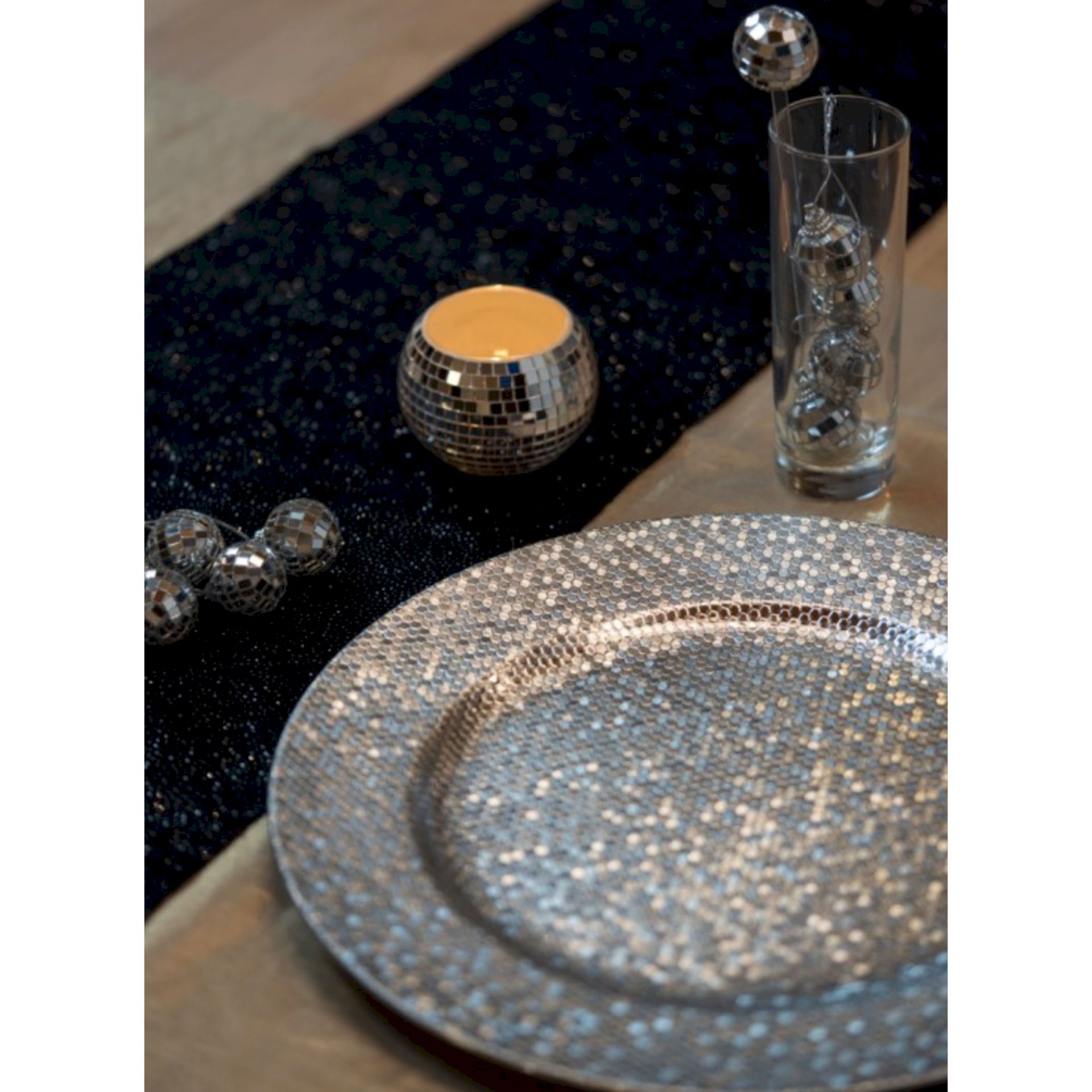 Sous-assiette PP argent effet boule à facettes