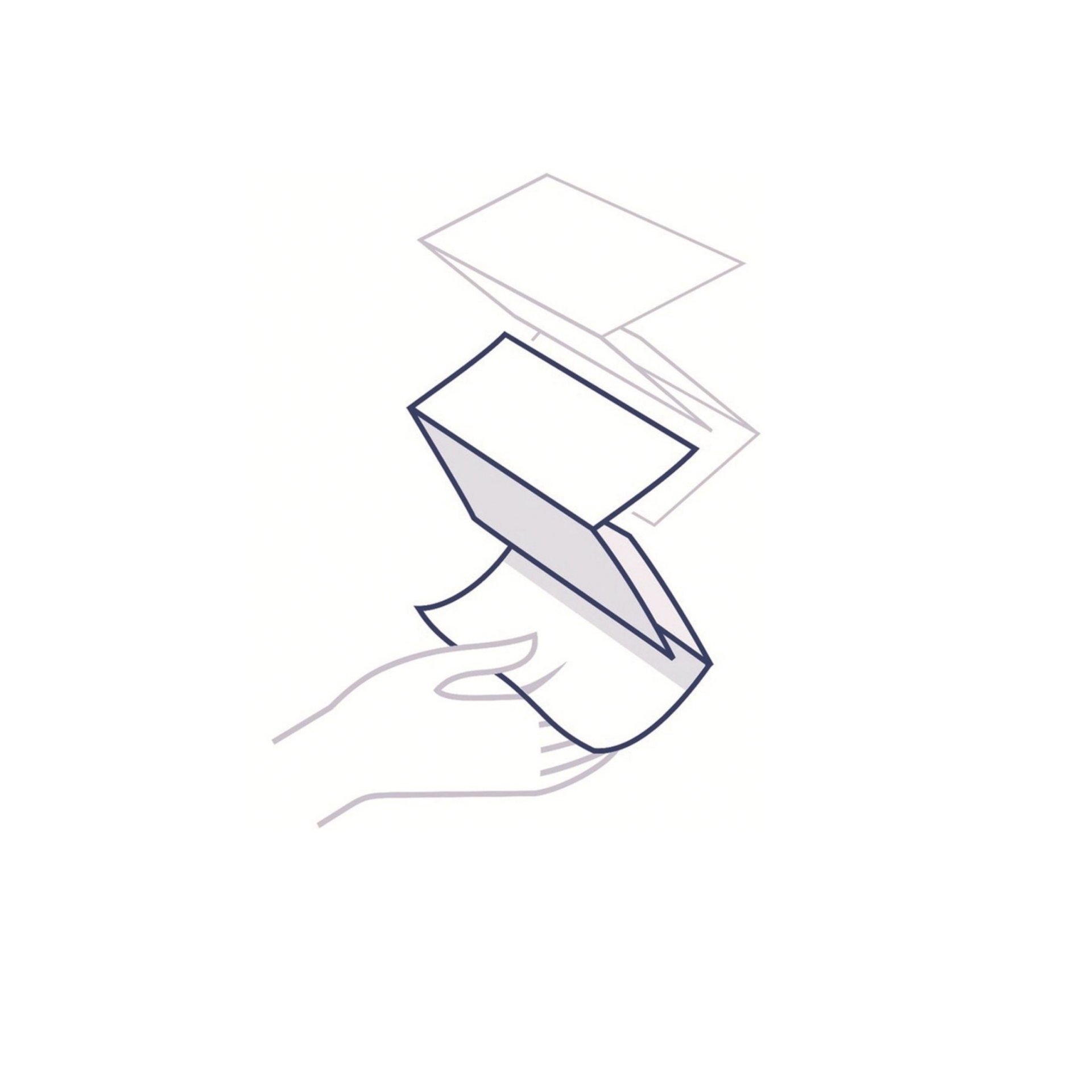 Papier ESSUIE-MAINS enchevêtré, plié en "Z".