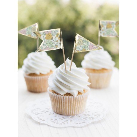 Paquet de 10 pics à cocktail motif floral Shabby et liseré Or