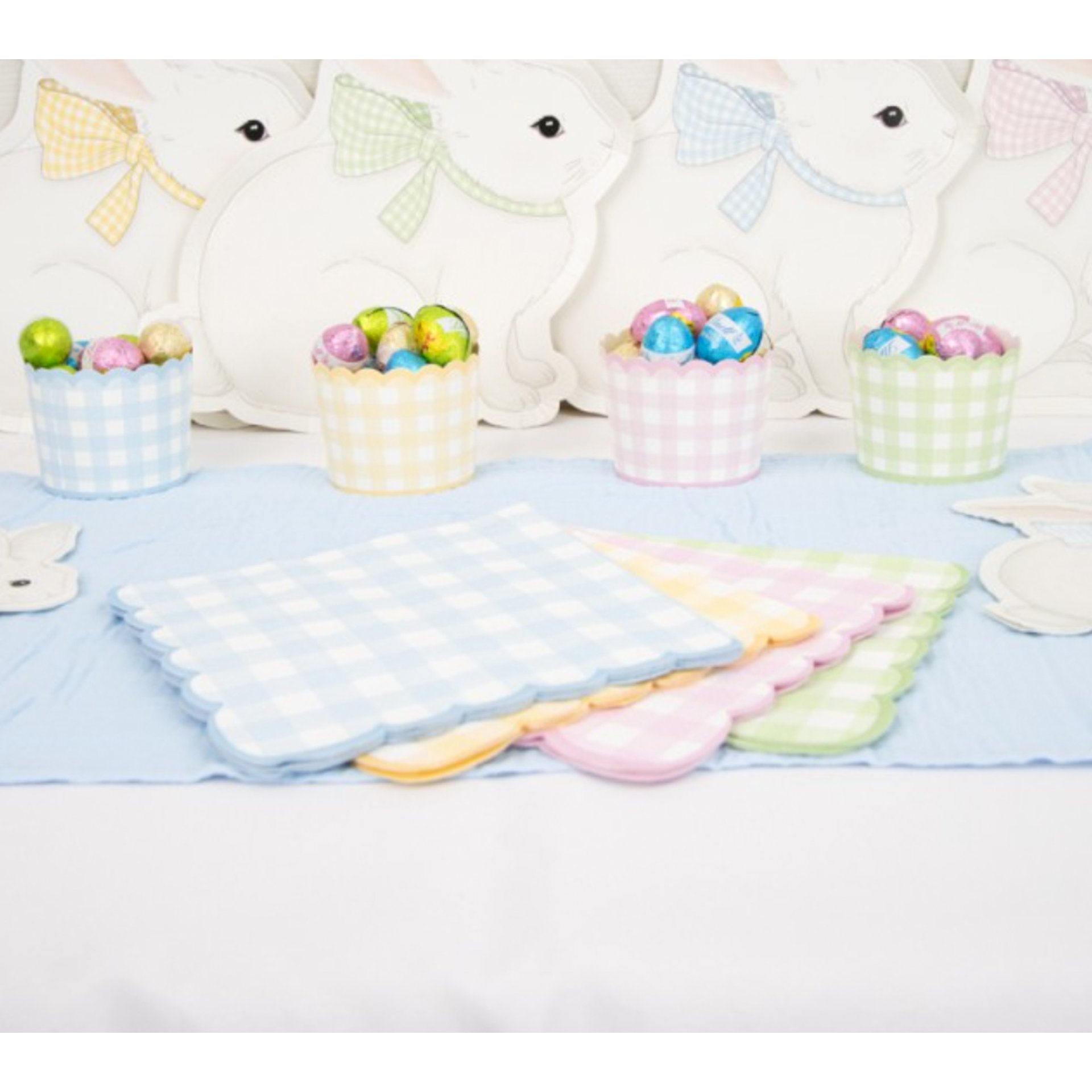 16 serviettes festonnées motif Vichy pastel - 4 couleurs assorties