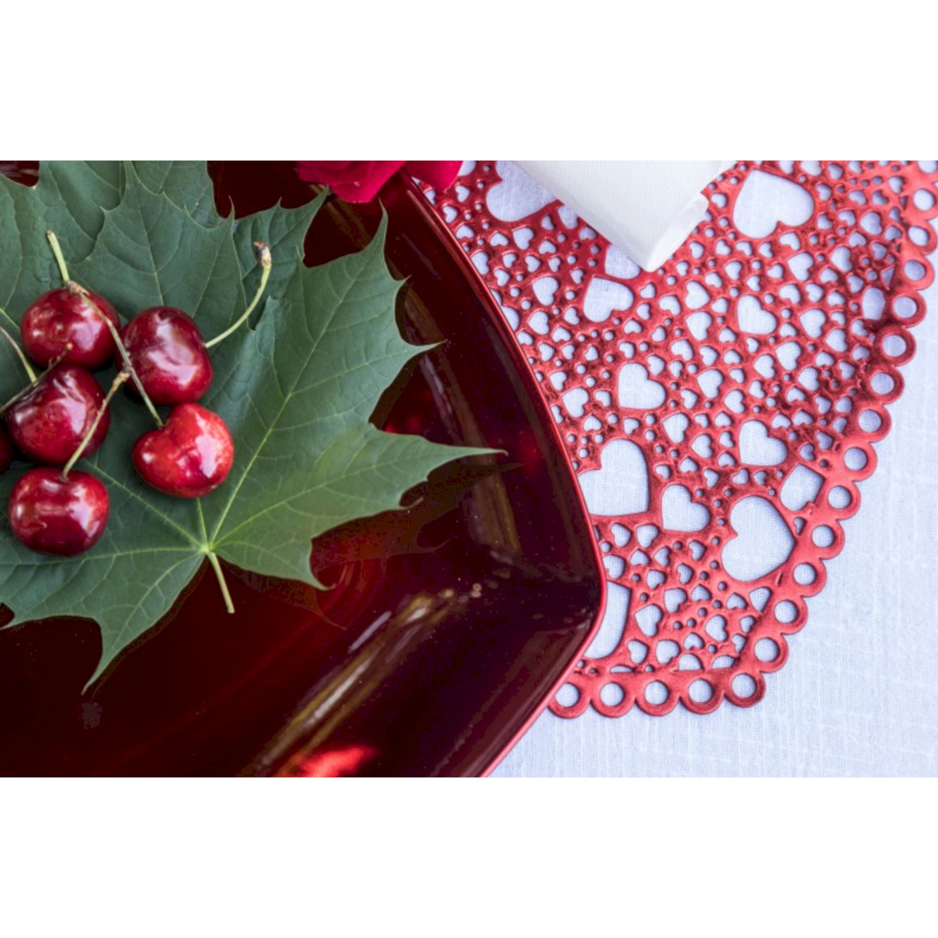 SET DE TABLE PVC AJOURE COEURS ROUGES 41CM X 39CM